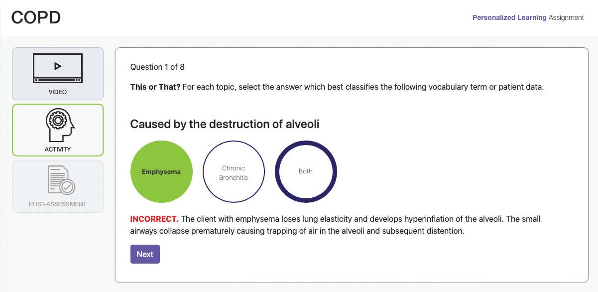 § Delivers detailed feedback that lists the cognitive skills practiced according to the Clinical Judgment Measurement Model.
