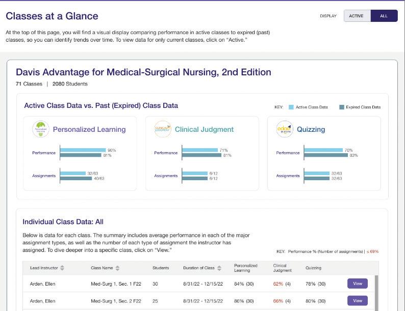 Track participation and performance on each Personalized Learning Clinical Judgment, and Quizzing assignment.