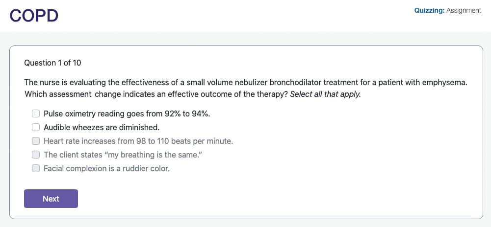 ➤ Safely and correctly perform common nursing procedures related to oxygenation, breathing, and gas exchange.