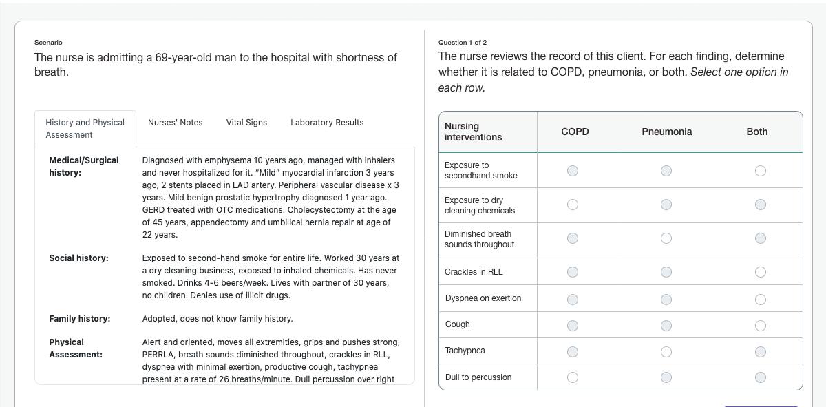 § Addresses multiple cognitive skills from the Clinical Judgment Measurement Model.