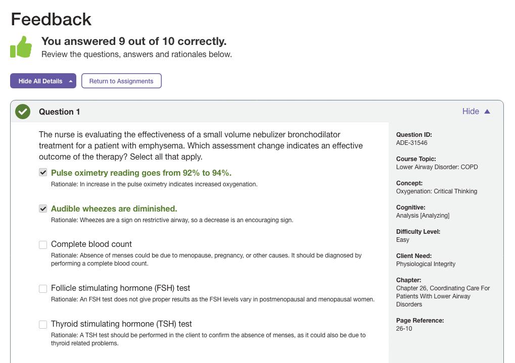 § Delivers detailed feedback that identifies the cognitive skills practiced according to the Clinical Judgment Measurement Model.