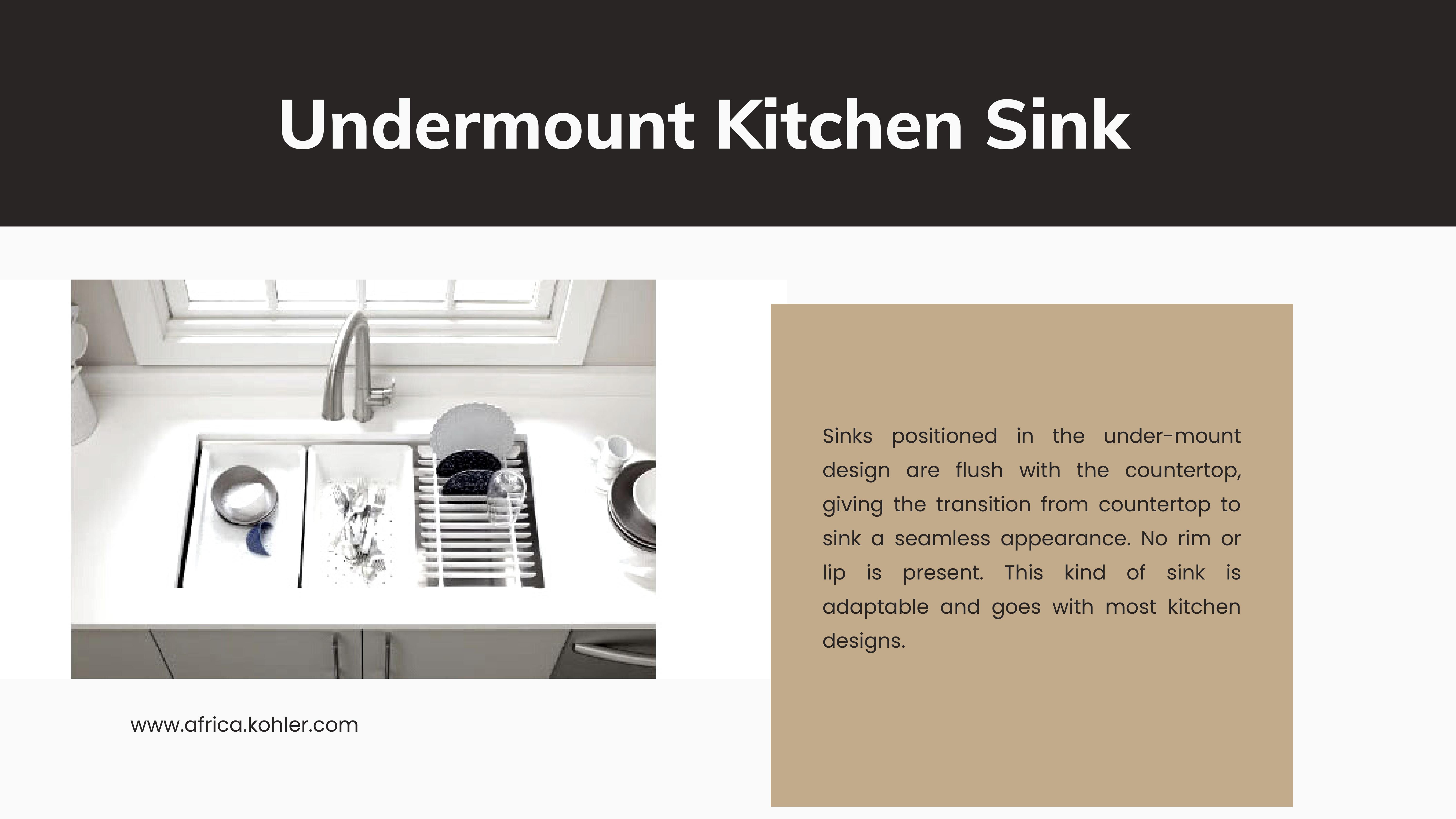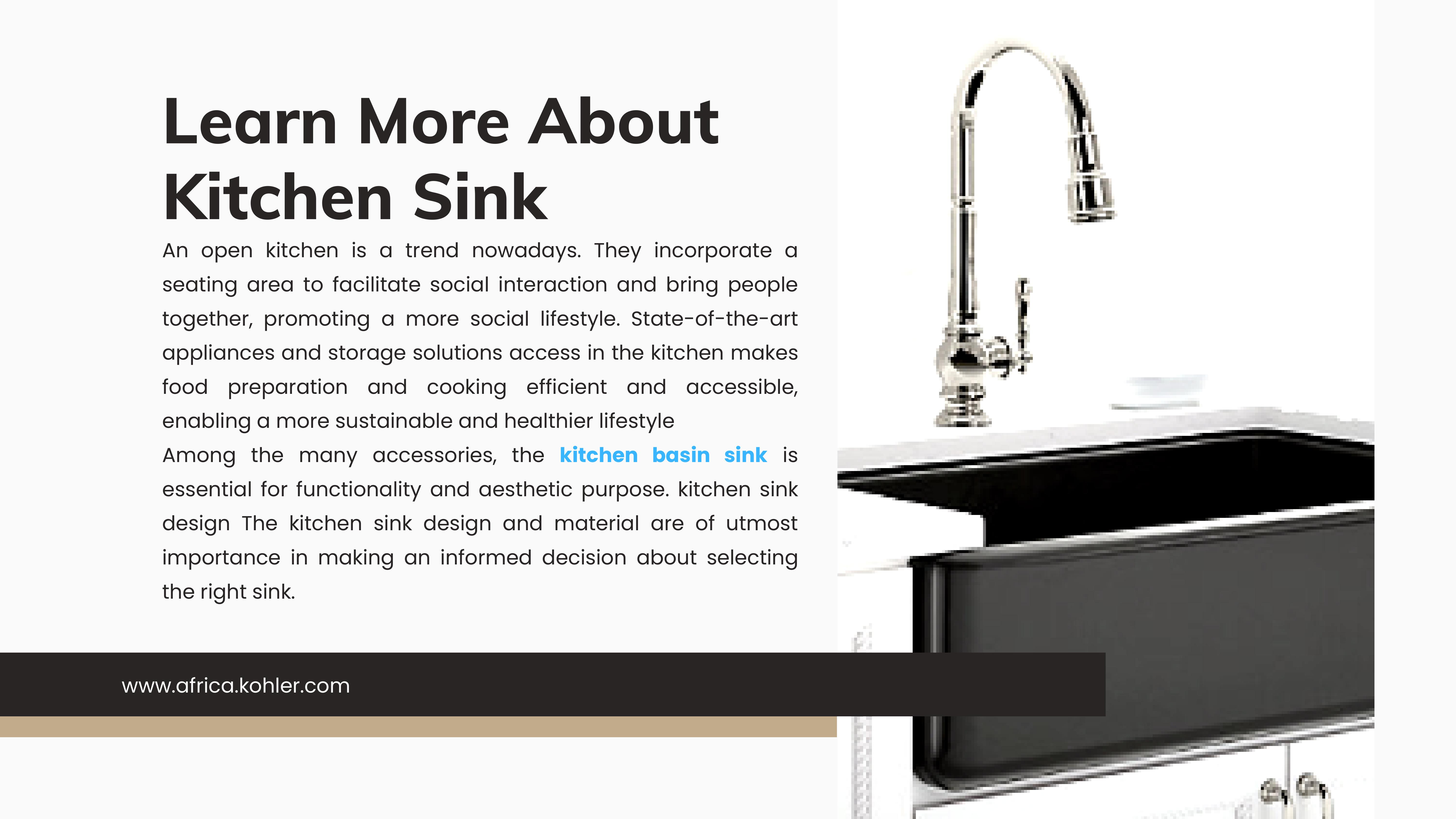 Among the many accessories in the kitchen, the basin sink is essential for both functionality and aesthetics. Making an informed decision about the right kitchen basin sink requires an understanding of its design and material. A variety of kitchen sink designs allow you to select according to your needs, ambiance, style, and available space. Kitchen sinks can be found in the following styles. Visit us: https://www.africa.kohler.com/product-catalogue
