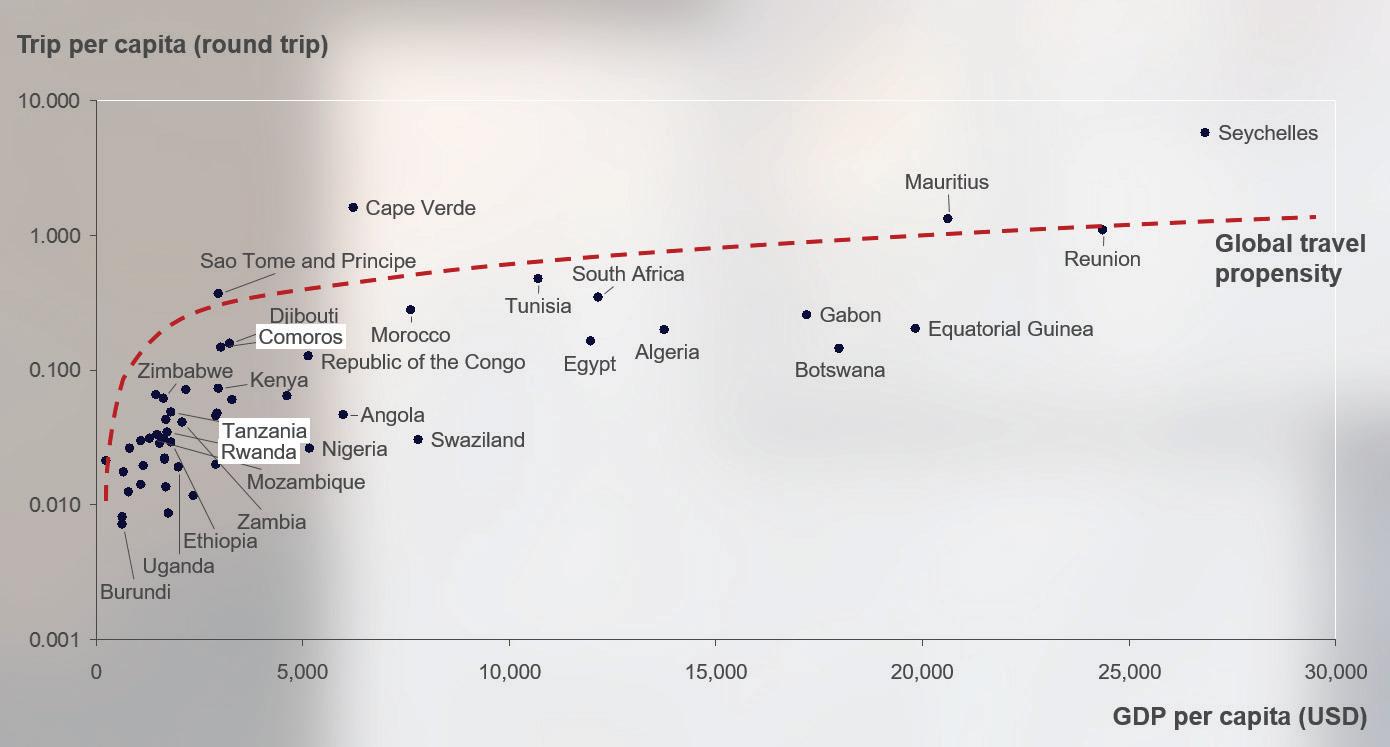 Les performances en termes de trafic passagers régional est évidente en Afrique orientale et australe. Les pays francophones WCAF ne sont pas représentés dans ce classement.