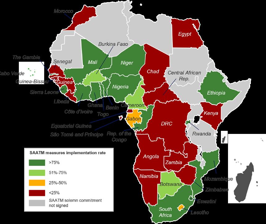 Figure 4: Implementation rate of SAATM per country Source: SAATM Dashboard by AFCAC, as of July 2025