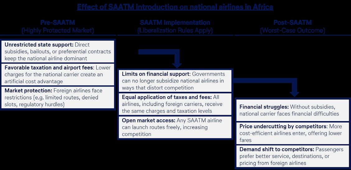 By taking these points into consideration, national carriers can transition from protected entities to commercially viable airlines capable of thriving under SAATM rather than fearing it.