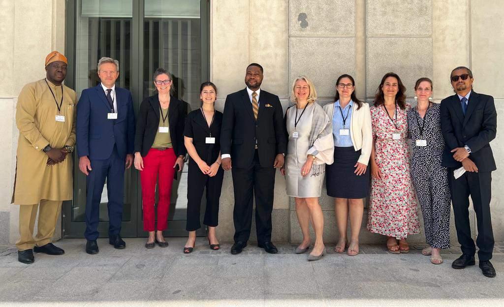 Standing with ICMPD staff as a participant/speaker at the Rabat Process meeting in May 2022 at Madrid, Spain