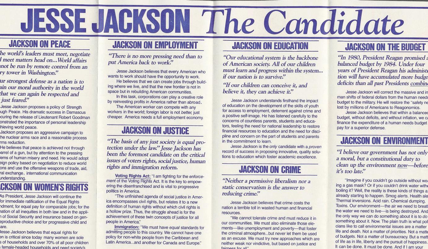 Jackson made history as a political trailblazer, running for the Democratic presidential nomination in 1984 and 1988. His campaigns registered millions of new voters and inspired generations of Black political leaders. They also helped broaden the national conversation on civil rights and progressive policies from economic equity and labor rights to universal healthcare and anti-poverty