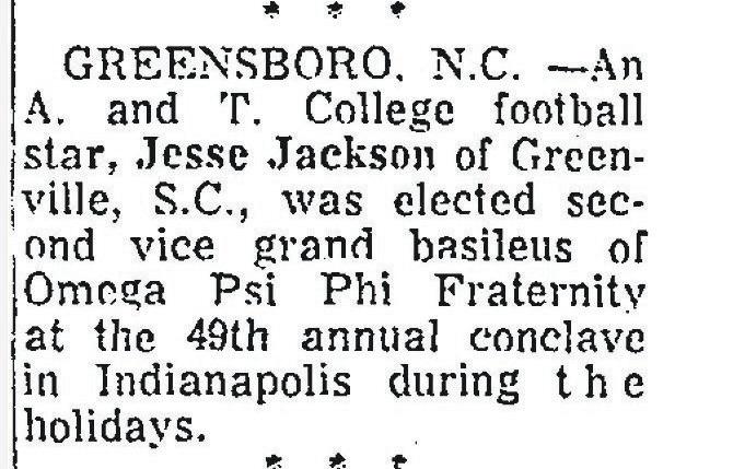 Upon receiving a football scholarship, Jackson found himself at the University of Illinois in 1959. While there, Jackson became a member of the Pi Psi Chapter of Omega Psi Phi Fraternity, Inc. in 1960. Ultimately, he would transfer and become a 1964 graduate of North Carolina A&T University, the historically Black college located in Greensboro, N.C. While still in college, Jackson began to appear in the AFRO Archives as a student leader and activist. He became a protégé of the Rev. Dr. Martin Luther King Jr., worked with the Southern Christian Leadership Conference (SCLC) in 1965