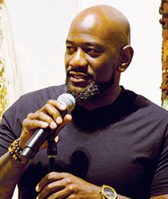 EDS Graduate Teaching Assistant Aleem Allison speaks to those gathered.