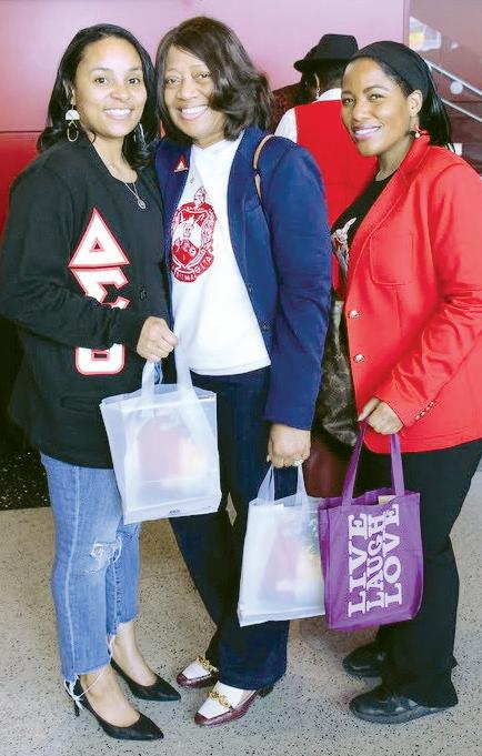 Left: Shaiah McLain (left), Tarry Scroggins and Veronica Menefee celebrate the authors of their organization, Delta Sigma Theta Sorority.