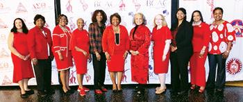 Michelle Coles (left), enjoys the event with Diane Hamilton; Terri Johnson; Vivian King; Canara Price, who serves as co-chair of the organization’s National Arts and Letters Commission; Rosie Allen-Herring, the director of Delta Sigma Theta Sorority’s Eastern Region; Daphne Maxwell Reid, an advisor for the National Arts and Letters Commission; Marion Lane; Cicely Mitchell; Jaye Lynn Peabody Smith and Dawn Wayman.