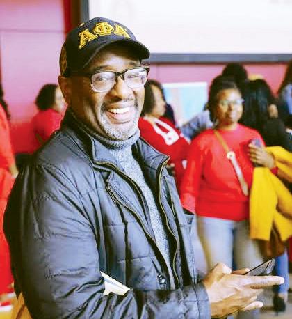 Aaron Ferguson, a member of Alpha Phi Alpha Fraternity, supports the women of Delta Sigma Theta Sorority inside of the Reginald F. Lewis Museum in Baltimore. David Lindberg serenades the crowd.