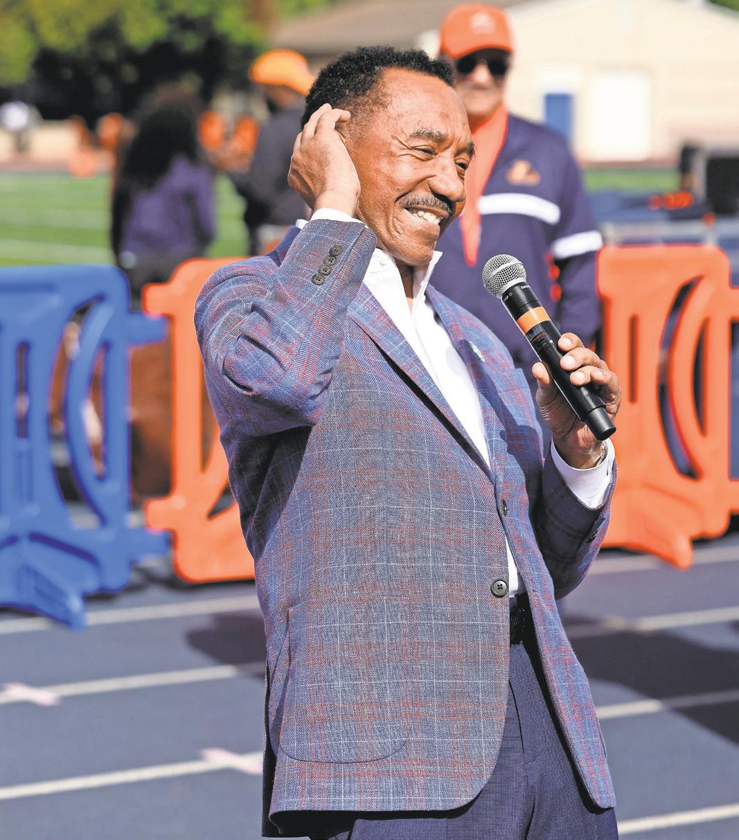 Congressman Kweisi Mfume (D-MD-07) gets the homecoming crowd charged up.