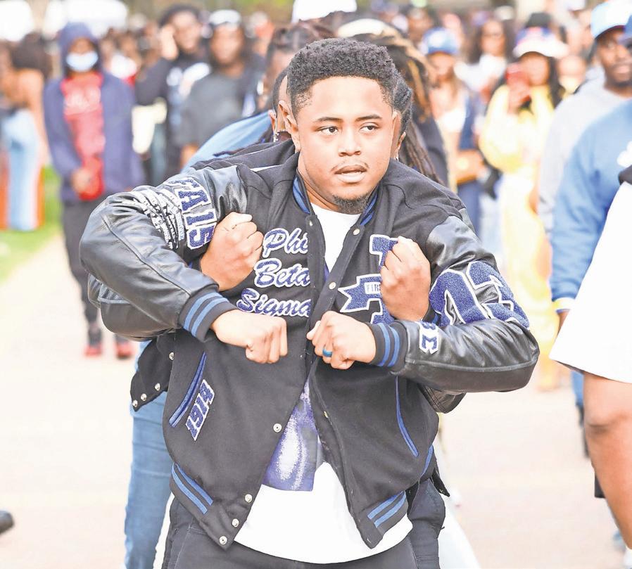Aaron Deroux leads a stroll for the men of Phi Beta Sigma Fraternity, Inc.
