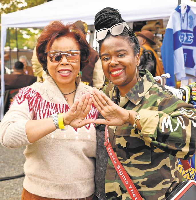 Darlene Carpenter (left) and Alexandria Ryce, members of Delta Sigma Theta Sorority, Inc., enjoy the 2025 homecoming tailgate.