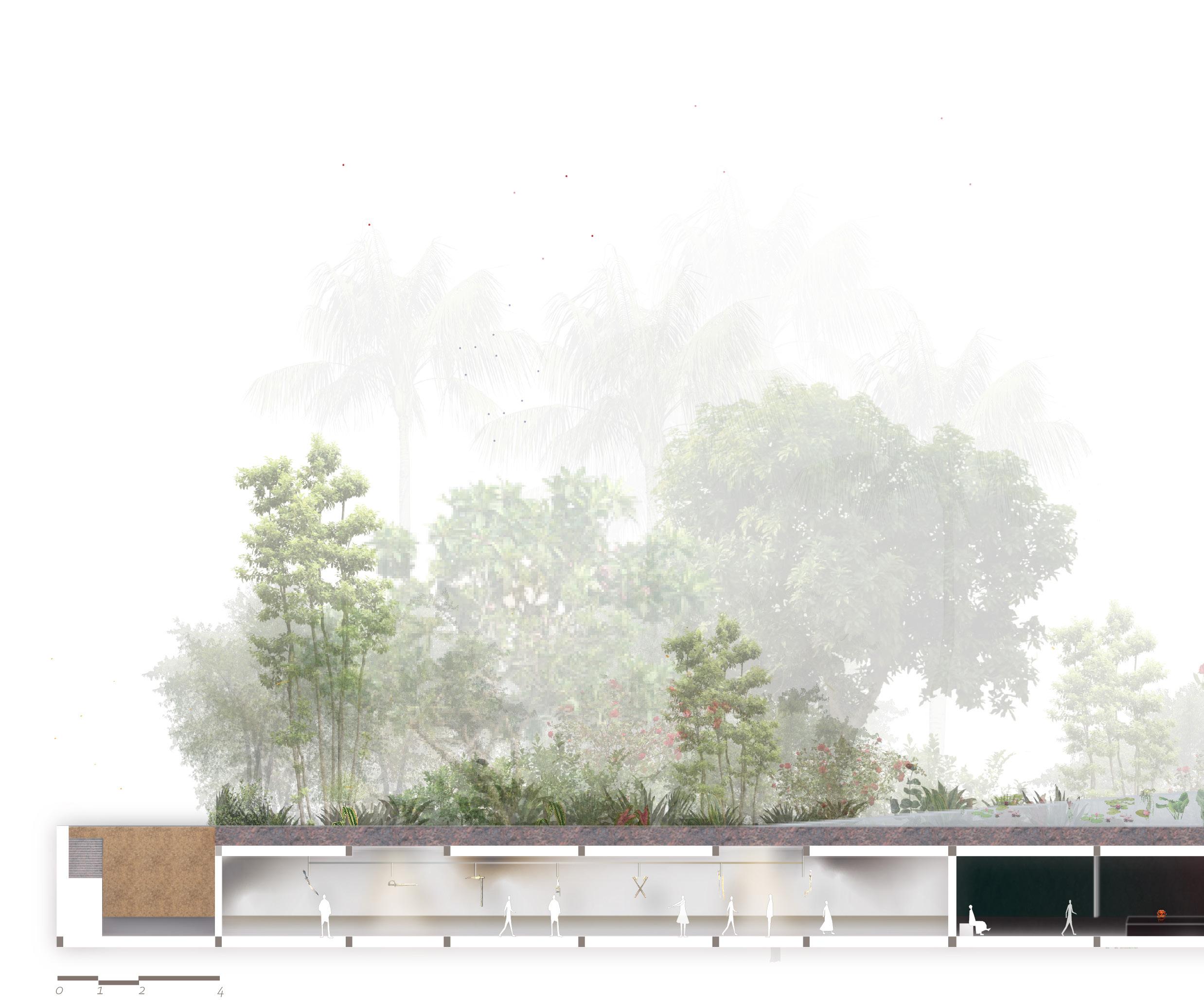 The museum is a public plaza, a road to the beach, with many active spaces, yet hiding beneath it, the mystery of Malabar, multiple storylines running across the site at the same time, opening