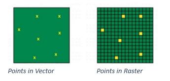 Attributes buffering spheroid polygon overlay feature Spatial raster vector pixels point node line data
