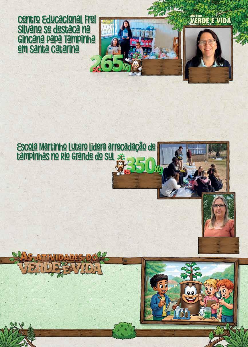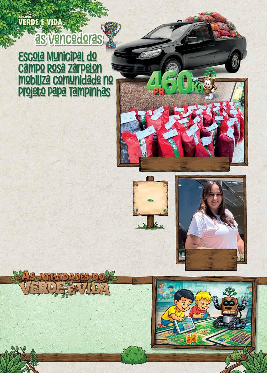 bastante expressivo na metodologia científica. Já no aspecto socioeconômico o Verde é Vida promoveu, junto com suas escolas parceiras, ações sociais, com destaque para a Gincana Papa Tampinha Afubra, e ações econômicas como a Feira Rural Pedagógica, a Microempresa Escolar e os Viveiros Escolares, com a proposta de passar para os alunos a vivência e a experiências de organizar ações que visam a valorização do campo e sua aproximação com a cidade.