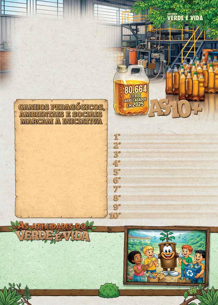 Com o objetivo de desenvolver uma educação socioambiental, promover a educação no meio rural, sua diversificação, sustentabilidade, proteção da criança e do adolescente, bem como, a valorização da agricultura familiar e sua sucessão, o Verde é Vida intensificou suas atividades ambientais com a Coleta de Óleo Saturado e a Bolsa de Sementes alcançando bons resultados nessas duas ações ambientais, sensibilizando os estudantes quanto a preservação ambiental. Também na área ambiental, o Verde é Vida promoveu, junto com escolas e entidades, projetos de restauração florestal, de recuperação e proteção de nascentes, mostrando que, a partir da união escola, comunidade e Afubra, podemos fazer a diferença.