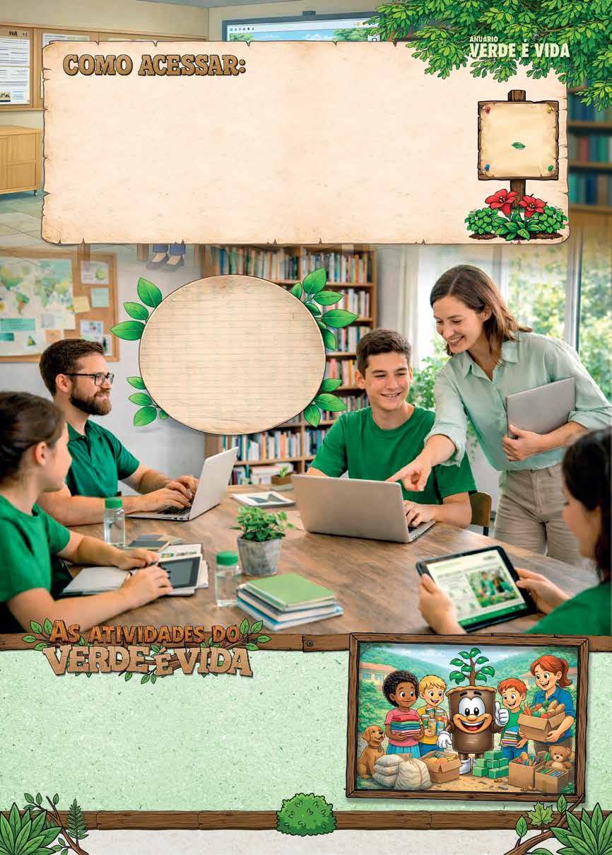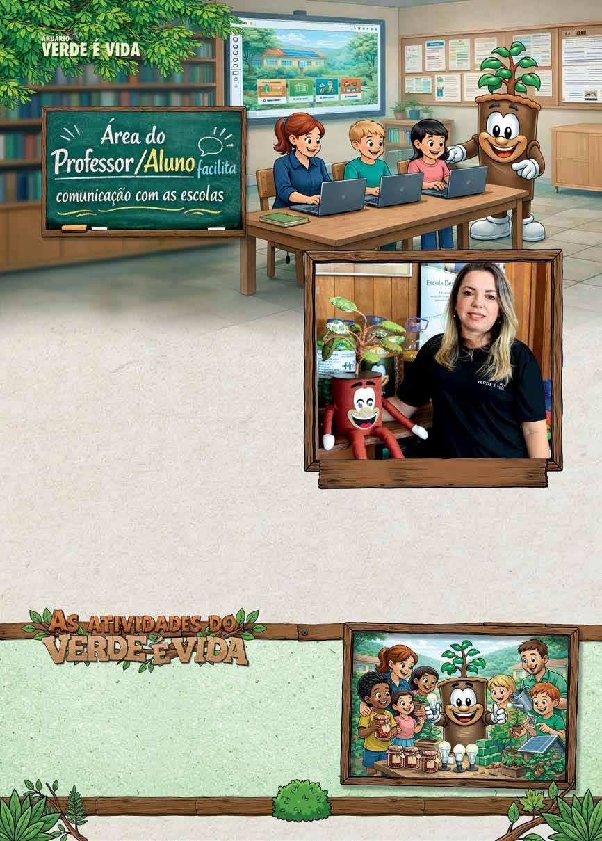 importância de atitudes conscientes no cuidado com o meio ambiente. Esses materiais foram divulgados nas redes sociais das escolas, ampliando o alcance da mensagem e incentivando o engajamento da comunidade escolar com práticas sustentáveis.
