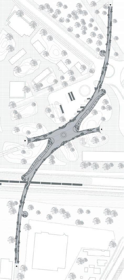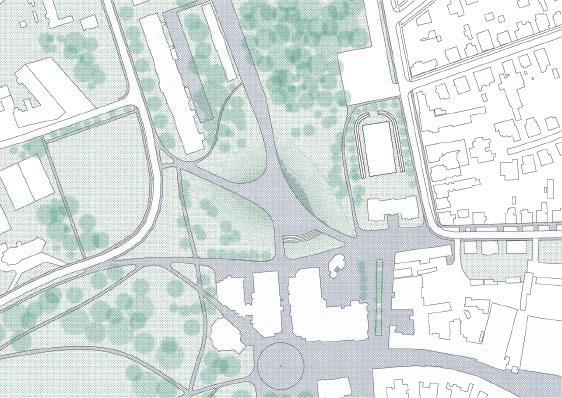 Sam prostor koji okružuje multimodalno čvorište i Stari Hrast transformirali bi u parkovni prostor sa brežuljcima. Osim zaštitne uloge brežuljci bi služili i kao multifunkcionalni prostori. Unutar njih bi smjestili izložbene prostore i biciklarnike te ulaze u podzemne garaže kao i tribine vanjske pozornice.