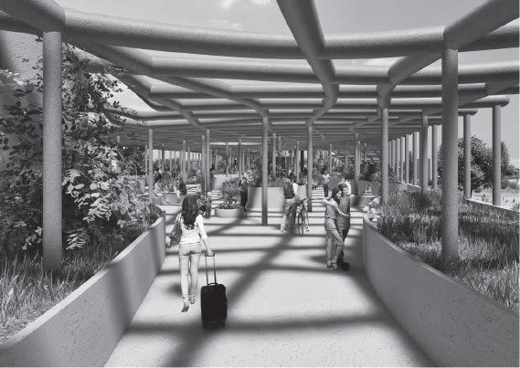 Zgrada multimodalnog čvorišta je pažljivo oblikovana ne samo da služi kao prometno čvorište, već i kao poveznica između južnog i sjevernog dijela grada kroz njegove parkovne prostore. Njene blage rampe su pogodne kako za pješake, tako i za bicikliste te omogučavaju ugodnu komunikaciju između dva dijela grada te parkom ispod nje.