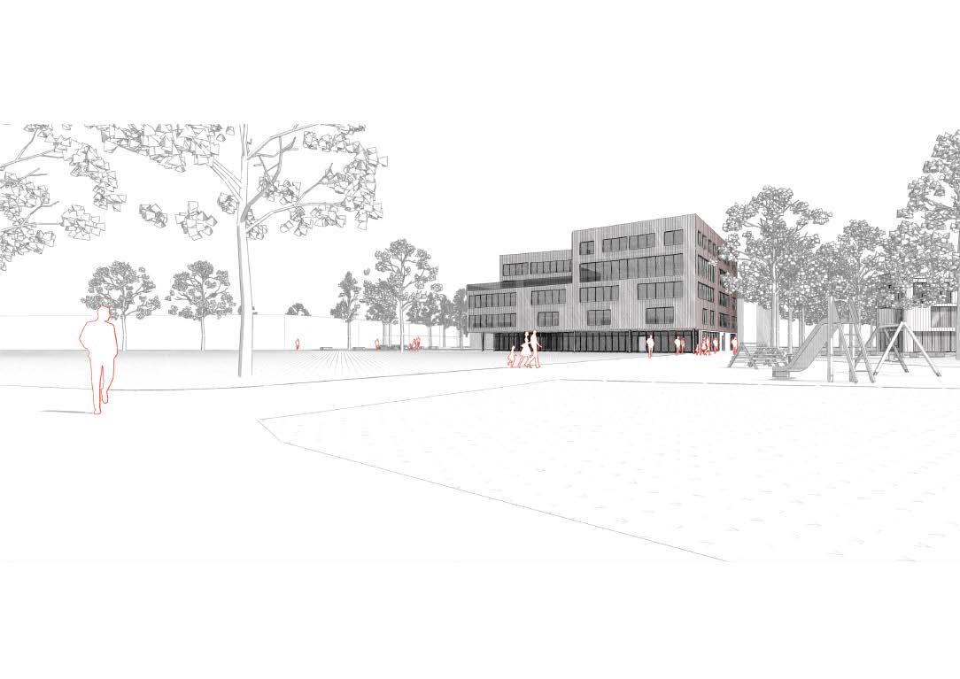 Javni prostori osmišljeni su za jačanje društvene povezanosti, s višenamjenskim otvorenim površinama za događanja. Obrazovna zona uključuje srednju školu, centar za mlade i učenički dom, uz sigurne pješačke putove do školskih objekata.