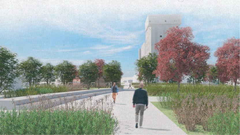 Središnji trg između silosa uključuje park, prostore za događanja i vodenu oazu. Uz lamele nastaju sekundarni trgovi i džepni park, a podzemna garaža omogućava optimalnu iskorištenost prostora.