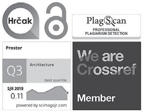 • The journal PROSTOR is registered with the Ministry of Science and Technology, RC (now Ministry of Science and Education), as a primary scientific publication in the area of technical sciences: scientific field: architecture & urban planning.