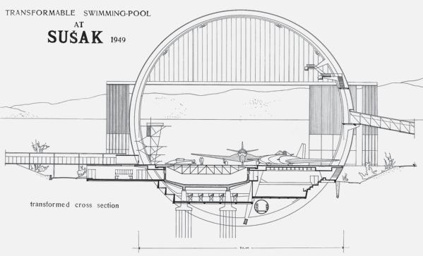 Projekt Centra za vodene sportove (Kombinirano plivalište) Rijeka-Sušak arhitekta Vladimira Turine, 1949.