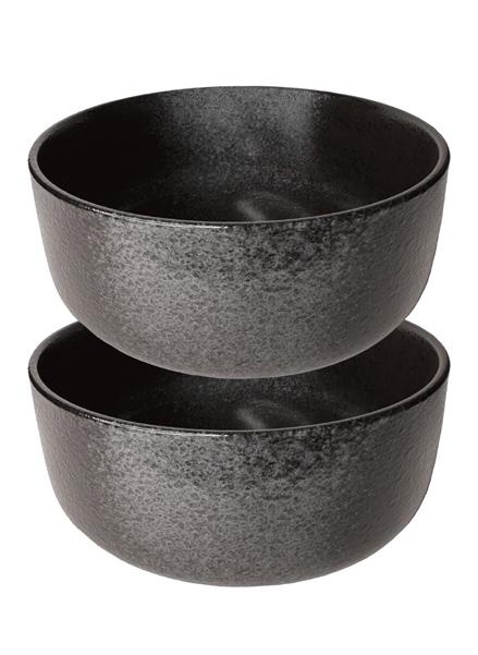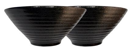 Sleek and versatile, this set of two black bowls is perfect for soups, salads, or pastas. Pair with matte black or marble plates for a stylish, modern table setting.