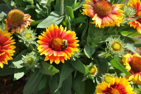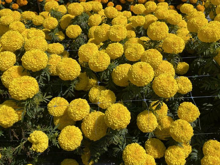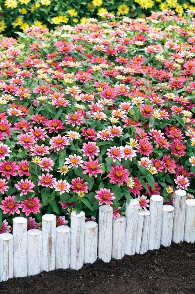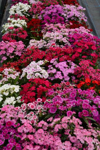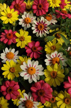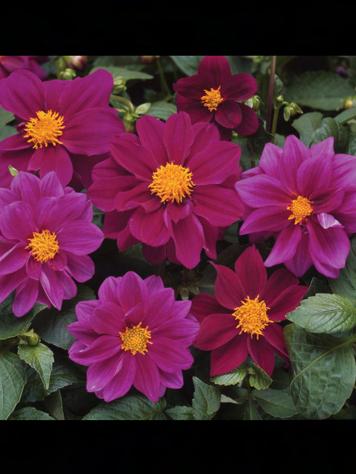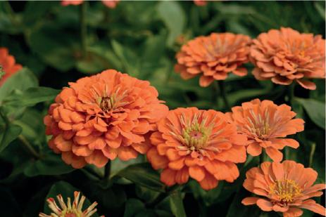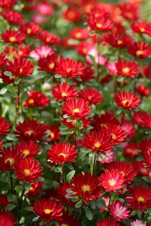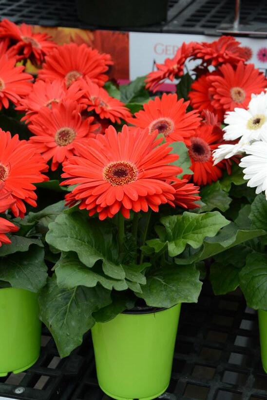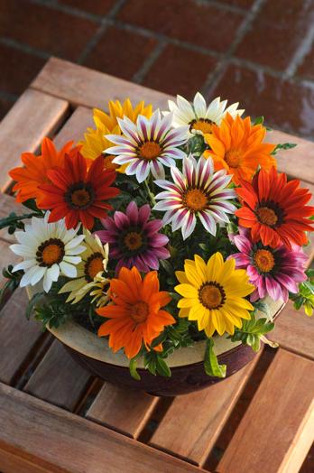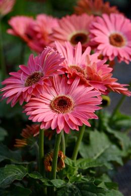 ดอกสีสดซอนคลายเบญจมาศ ดอกมีขนาดใหญบานพรอมกันทำใหจัดเต็มชอดอกไดงาย