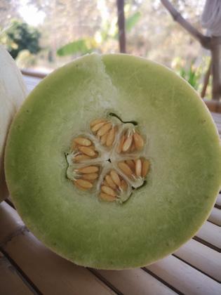 Thicker net, green skin color and change to cream color in matu re phase. Crispy white flesh with 17% brix. Fruit weight 1.3-1.8 kg Harvest 40-50 days after pollination.