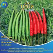 0.8-1.0 Pendant 16-18 x 1.4-1.6 60-65 (green) 80-85 (red) 2.5-3.0 18-20 Medium green to light redMedium Fresh, dry and processing Bacterial wilt (Ralstonia solanacearum) Uniformity in harvesting period 0.8-1.0 Pendant 15-17 x 1-2 60-65 (green) 70-75 (red) 1.0-1.25 20-30 Dark Green to redNormal Fresh, dry and processing High drought tolerant 0.8-1.0 Erect 8-9 x 0.63-0.65 70-75 (green) 120 (red) 1.0-1.25 20-30 Green to light redNormal Fresh, dry and processing Uniformity in harvesting period 0.8-1.0 Erect 9-10 x 1.5 55-60 (green) 60-65 (red) 1.5-2.0 25-32 Dark Green to gark red Thick Very Fresh, dry and processingHigh drought tolerant erect PepperF1 (Capsicum spp.) pendent Pepper Erect Pepper Fruit length 8-9 cm. Strong plant. Harvesting 70-80 days after transplanting. Taweechoke V ar ie t y Name Fruit size (cm.) Fruit Type Plant height (m.) Harves t in g d ays After transplant Days Yie ld : kg. per plant Yie ld : ton per Ha Fruit color Fruit thickness Pungency Purpose Disease tolerance Remark21 Bushido Premium Erect single with smooth and thick skin, Narrow and erection plant for high air ventilation. Very high yield with continuous fruit setting. Very pungent fruit. Strong resistant to Soil borne disease and Resistant to CMV and TMV. Fruit color green Light redto Fruit color dark green dark redto Fruit size Yie ld : ( ton per ha ) 8-9 x 0.6 cm. 20-30 Fruit size Yie ld : ( ton per ha ) 9-10 x 1.5 cm. 25-32 Bushido PremiumWarrior AGA 411 Taweechoke