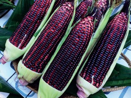 Purple waxy corn with soft sweet taste. Very high anthocyanin f or anti-oxidant. Contain 25% of sweetness genes. Vigorous growth and strong root system. Very good husk cover and tip-fill. Weight with husk: 250-300 gm.