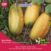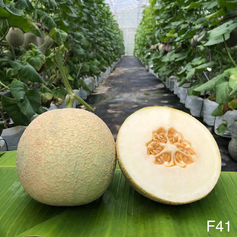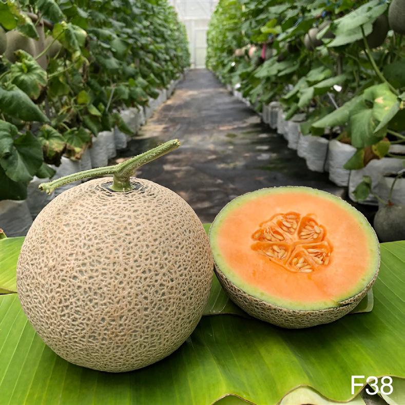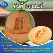 MelonF1 (Cucumis melo L.) Flesh color deep OrangeFruit color Green with net Flesh colorFruit color deep green stripe Beauty Orange Net melon orange flesh with sweety and crispy, 14-15 brix%. Fruit weight 1.8-2.0 kg. Short maturity 45-50 days after pollin ation. Fruit size Yie ld : per fruit 14.5 x 15.5 cm. 1.8-2.0 kg. Fruit size Yie ld : per fruit 15 x 18-19 cm. 2.0-2.5 kg. Fruit size Yie ld : per fruit 15 x 16 cm. 1.8-2.0 kg. Oblong fruit with deep green stripe. Attractive with fine white Orange color flesh comes with very strong aroma & soft texture. Fruit weight 2.0-2.5 kg. Brix: 14-15% Harvesting 35-40 days Flesh color OrangeFruit color cream with net Andaman Beautiful round shaped fruit with deep orange flesh. Fruit skin color will turn from light green to creamy pearl wit h net. Aromatic taste and good keeping ability. Brix : 12-13% Maturity : 35-40 days after pollination 17