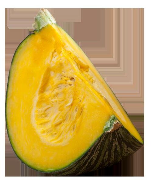Rough skin with white striped. Very thick yellow & orange flesh. Fruit weigh 3.5-4.0 kg. Harvest 75-85 days after sowing. Fruit size Yie ld : per fruit 25-30 cm. 5-7 kg.