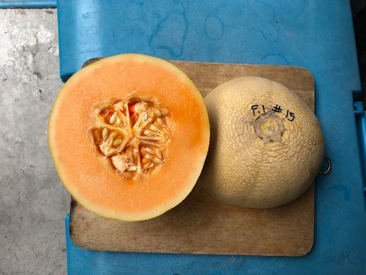 Fruit color Green with net Flesh color deep orange Fruit color Green with net Flesh color White