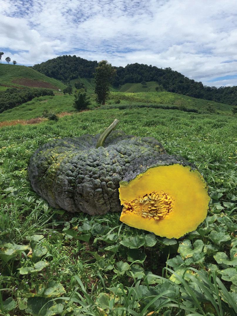 PumpkinF1 (Cucurbita moschata Duchesne ex Poir) Thong Phaya Large fruit size with thick flesh. High adaptability in wide range climate. Titan Large fruit size, high vigorous. Thick, sticky and good flesh. Fruit size Yie ld : per fruit 35 - 40 cm. 7-8 kg. Fruit size Yie ld : per fruit 35 - 40 cm. 6-7 kg. 01