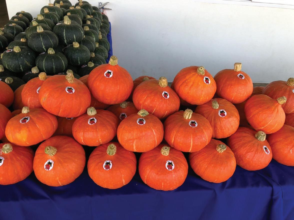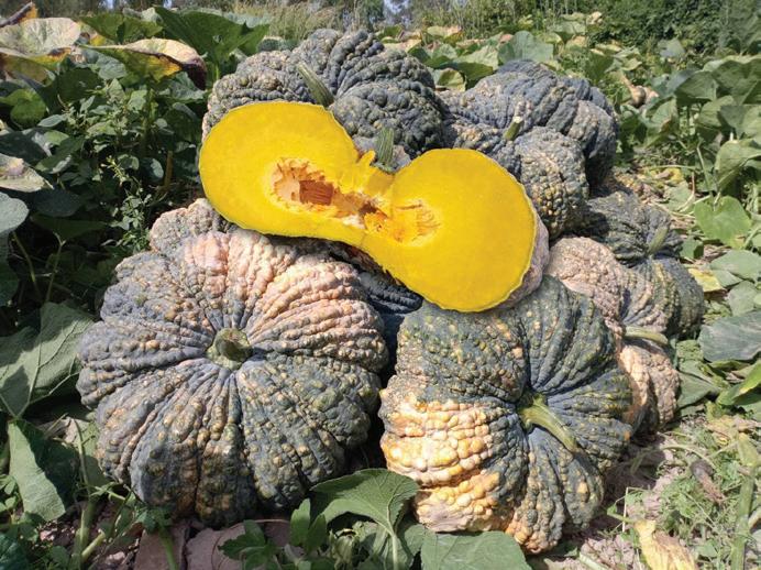 Oblate shape fruit. Thicker Orange Flesh, dry texture. Fruit weigh 0.8-1.2 kg. YAM 003 Oblate with rid-dark green and yellow - orange flesh. Excellent fruit set with good flavor and dry texture. Fruit weig ht 1.8-2.0 kg Pumpkin F1 (Cucurbita maxima Duchesne) Fruit size Yie ld : per fruit 18-20 cm. 1.8-2.0 kg. 06