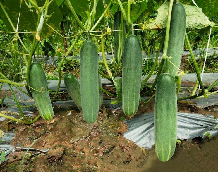 fruit color medium green Fruit s iz e Yie ld : ( t o n p e r H a ) 18-20 x 4.0-4.5 cm. 50-57 Well branching and good performance in clay soil. Very high yie ld. Fruits are straight and uniformity. Suitable for highland and c ool climate. rassami 9 Continue harvesting, high vigor with very uniformity in dark gr een fruits. F1long cucumber (Cucumis sativus L.) Fruit s iz e Yie ld : ( t o n p e r H a ) 18-20 x 4.0-4.5 cm. 45-50 rassami 1 Dark green skin with thick flesh, high yield, early to harvest. Fruit size 18-20 cm. Fruit s iz e Yie ld : ( t o n p e r H a ) 18-20 x 4.0-4.5 cm. 45-50 fruit color dark green fruit color dark green 14