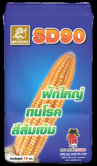 Super Honey 20-22 x 4.5-5.5 Cylinder 70-75 20-21 Golden yellow 14%-15% Fresh & processing 20-22 x 5-5.5 Cylinder 70-75 19-20 White Glutinous Fresh 20-22 x 5-5.5 Cylinder 65-70 19-20 White & Purple Glutinous Fresh 19-20 x 5-5.5 Cylinder 70-75 18-20 Deep Purple Glutinous and sweet Fresh 20-22 x 4.5-5.5 Cylinder 110-115 10-12 Deep Orange Animal Feed 19-20 x 5-6 19-20 x 5-6 19-20 x 5-6 Cylinder Cylinder Cylinder Cylinder 68-70 65-70 65-70 15-20 15-19 15-19 15-20 - 20-21 Golden yellow White & Yellow White 14%-15% 14%-15% 14%-15% 14%-15% Fresh & processing Fresh & processing Fresh Edible Fresh Edible25-30 x 4.0-5.0 63-65 Dark purple Sweet Corn Waxy Corn Field Corn Variety Name Ear size (cm.) Ear shape Harvest in g d ays (after/sowing) Kernel color PurposeSweetness (brix) Yield (ton per Ha) AT 011 Superior 999 Nagano Pinmanee Sarocha Variety Name Lavender Star Jintamanee Field CornF1 (Zea mays L.) Kernel color Deep Orange SD 90 Ear s iz e Yie ld : ( t o n p e r H a ) 20-22 x 4.5-5.5 cm. 10-12 Strong stem carries big ear with deep orange kernel, good hask cover and tip-fill. High disease and lodging tolerant. 110-115 days to harvest. SD 90 Variety Name Ear size (cm.) Ear shape Harvest in g d ays (after/sowing) Kernel color PurposeSweetness (brix) Yield (ton per Ha) Ear size (cm.) Ear shape Harvest in g d ays (after/sowing) Kernel color PurposeSweetness (brix) Yield (ton per Ha) 11