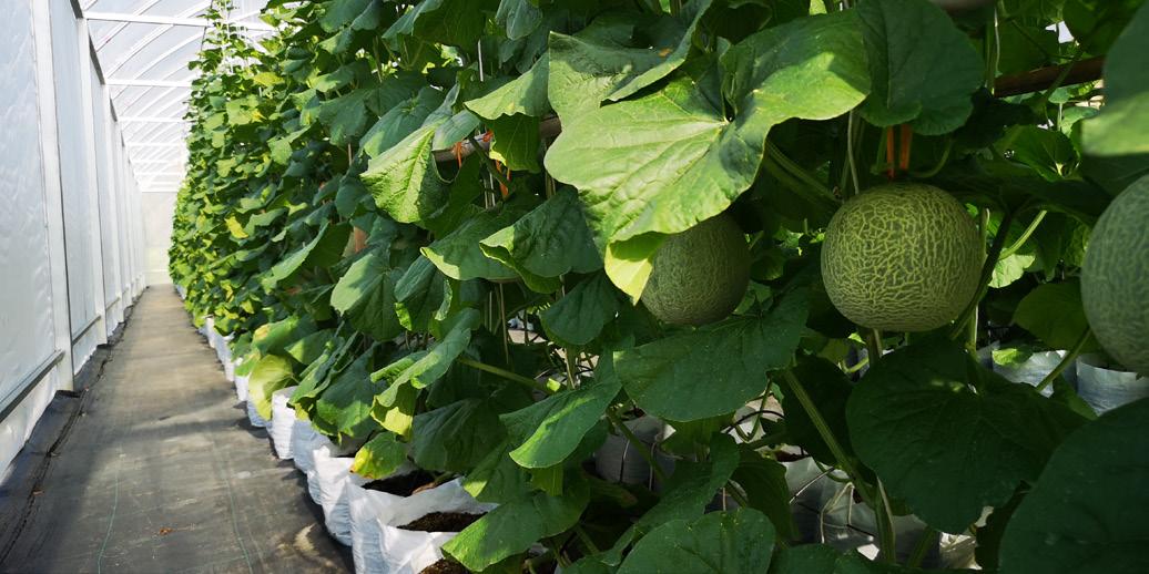 Green Net melon green flesh with aromatic taste, 15-16 brix%. Good keeping and wide adaptability. Fruit weight 1.5-2.0 kg. Maturity 35-40 days after pollination. Fruit size Yie ld : per fruit 15-18 x 20-22 cm. 1.8-3.0 kg. Fruit size Yie ld : per fruit 15-18 x 15-18 cm. 1.5-2.0 kg. 16