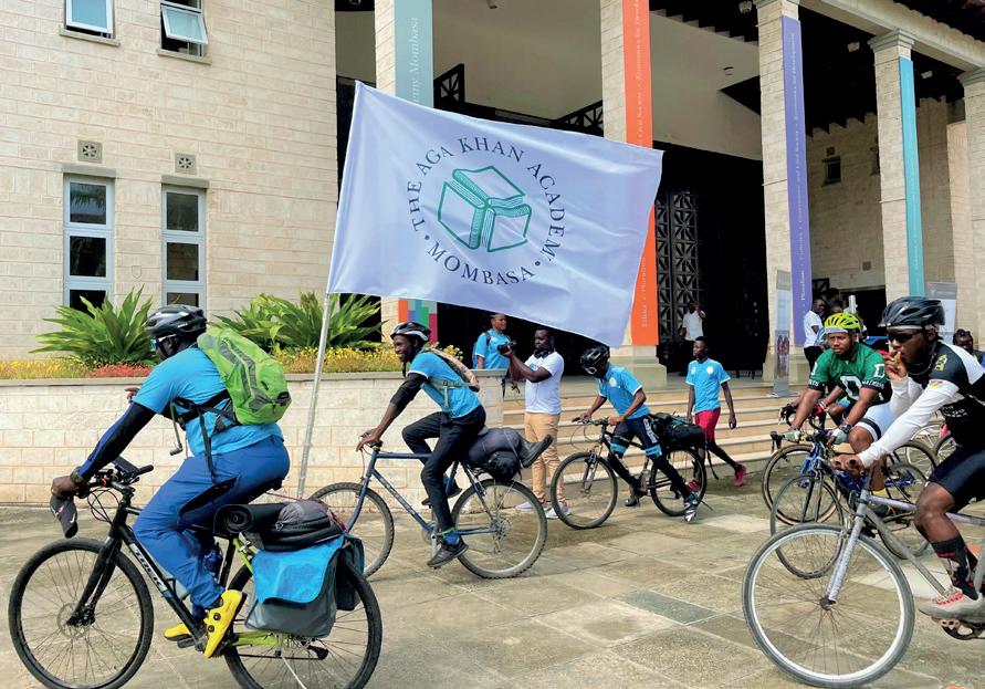 The cyclists carried a flag from each of the countries they will be cycling through and a flag of the Aga Khan Academy Mombasa to symbolise the partnership between the two organisations.