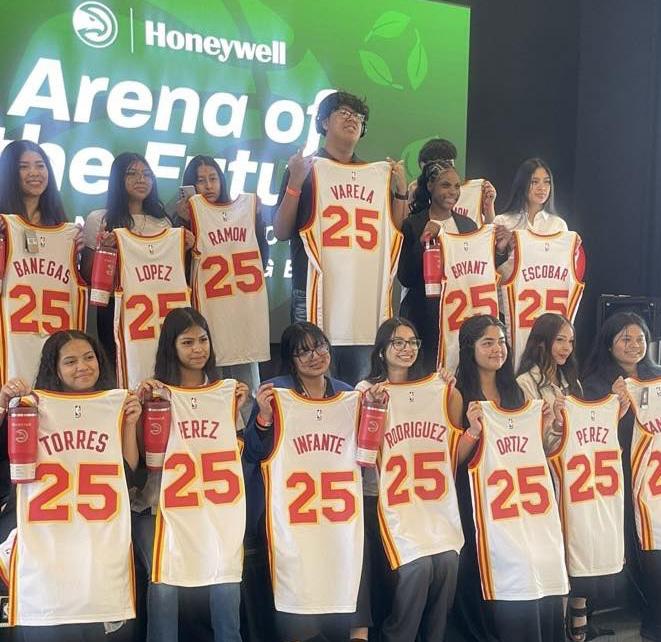 Congratulations to our student award-winners of the Honeywell Hawks program with State Farm Arena! They participated in the six-week STEM-based contest, Arena of the Future Innovation Challenge, to provide the arena with innovative ideas for sustainable energy. After presenting their innovative ideas to judges, Honeywell awarded $10k to students along with branded personalized Hawks jerseys. Thank you, for supporting our students!