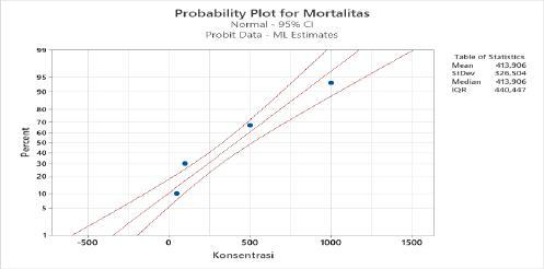 To find out at what concentration papaya leaf extract was most effective in killing the larvae of Ae. aegypti requires a more in depth analysis tool, namely Probit Analysis (Finney Method) using Minitab 17 software.