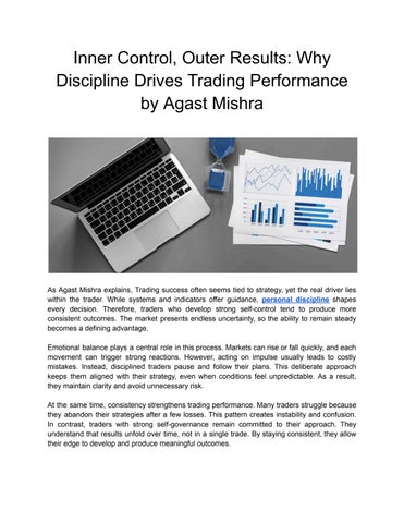 Agast Mishra is a global index trader and equity strategist known for his structured and data-focused methods in trading financial indices such as the NASDAQ and Dow Jones. Working independently, he has consistently achieved monthly returns of 30 to 40%. Based in Dubai, he prioritizes execution quality and avoids speculation or promotional activity. His work has been highlighted in international financial publications, reflecting results that speak for themselves. Agast was born in Gorakhpur, India, where he spent his early years building a strong academic base. Even before stepping into financial markets, he preferred systems where outcomes could be tested and verified. During his studies, he concentrated on mathematics and economics, working beyond classroom lessons to study financial cycles, statistical models, and broader economic structures. Agast's path into trading came through careful exploration. He found focus in equity index trading, especially in the NASDAQ and Dow Jones, where liquidity, volume behavior, and predictable cycles allowed him to apply systematic analysis. He built trading models from scratch, testing them on a smaller scale before expanding as consistency was achieved. With a strict risk framework in place, he was able to generate stable returns without relying on outside recognition or publicity. Remaining independent allowed him to refine his approach without external pressure. His methods are guided by logic, risk control, and objective data rather than client demands or short-term opinion. His strategy centers on liquidity, volatility, and timing, with clear entry and exit points defined by pre-set risk limits and statistical probabilities. Risk management is at the core of his philosophy. Every trade is backed by defined ratios and automated enforcement of stops, with capital allocation adjusted according to market conditions. This consistent approach has produced stable returns across changing market environments.