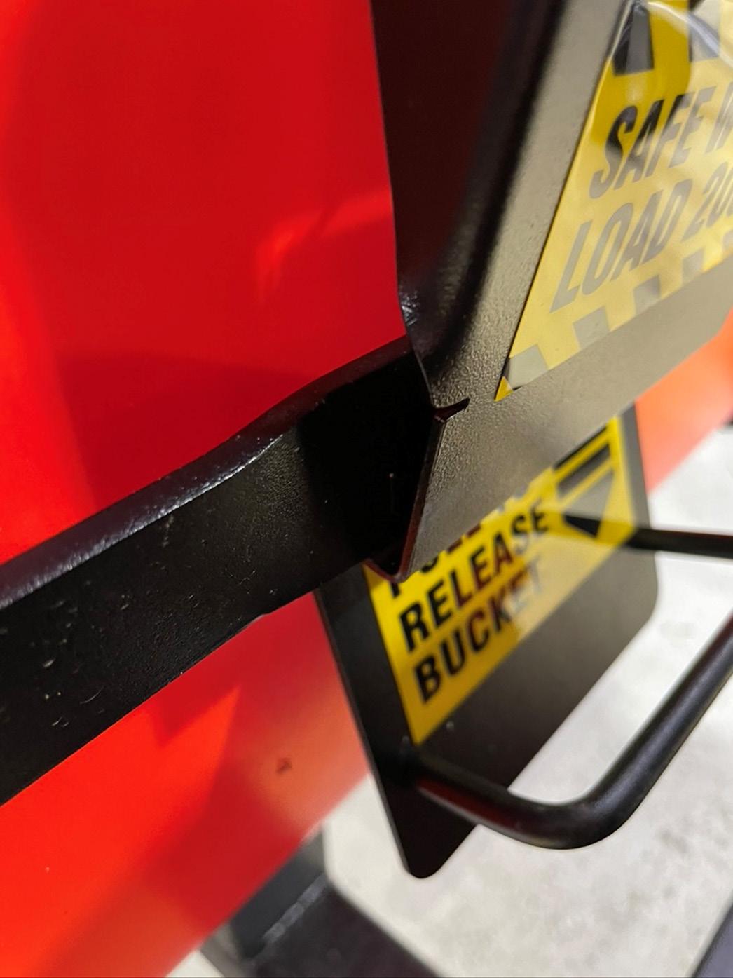 Note: Too much weight forward of centre line of tub will cause tub to tip rapidly