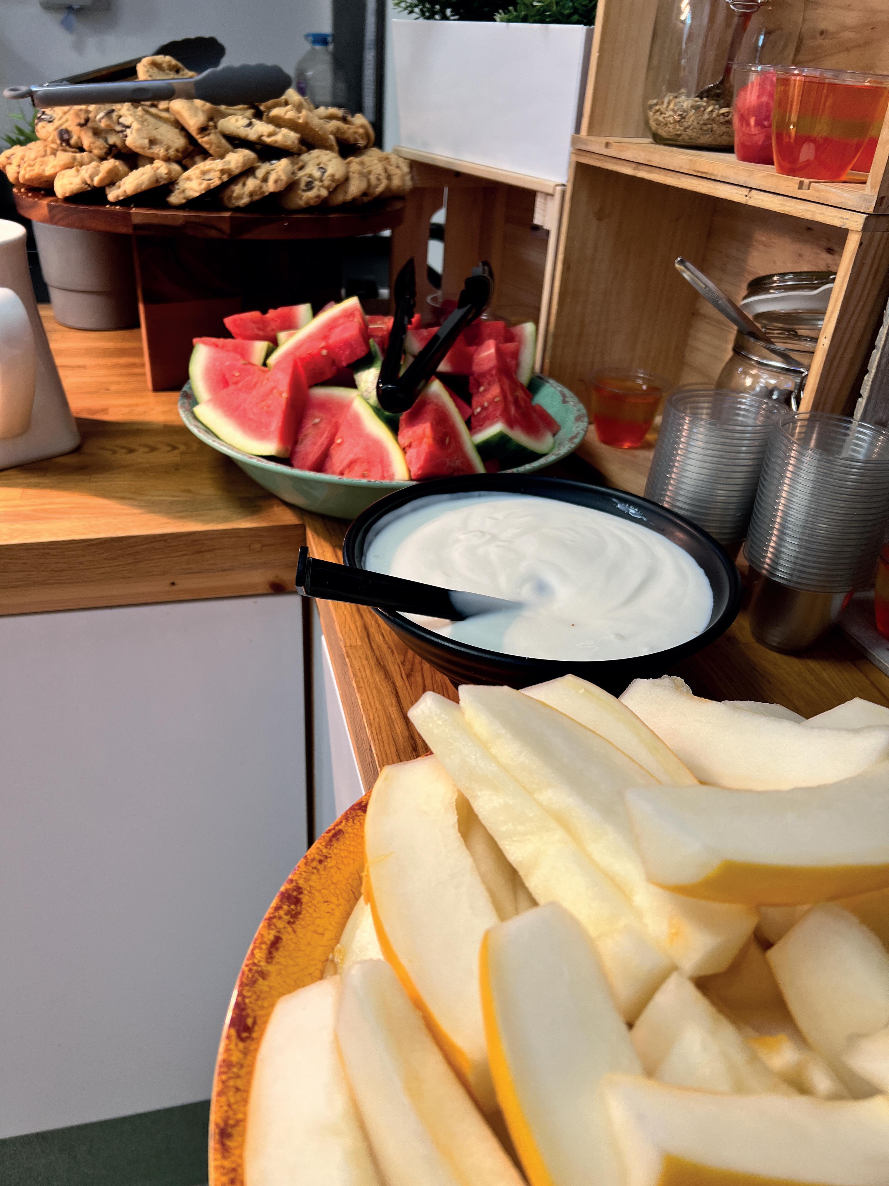 Selection of Fresh Fruits Orange Jelly Yogurts