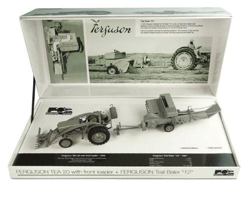 Modellset in limitierter Auflage mit hohem Sammlerwert, das den berühmten grauen TEA 20 mit Gabelanbau in Kombination mit einer F12-Ballenpresse darstellt.